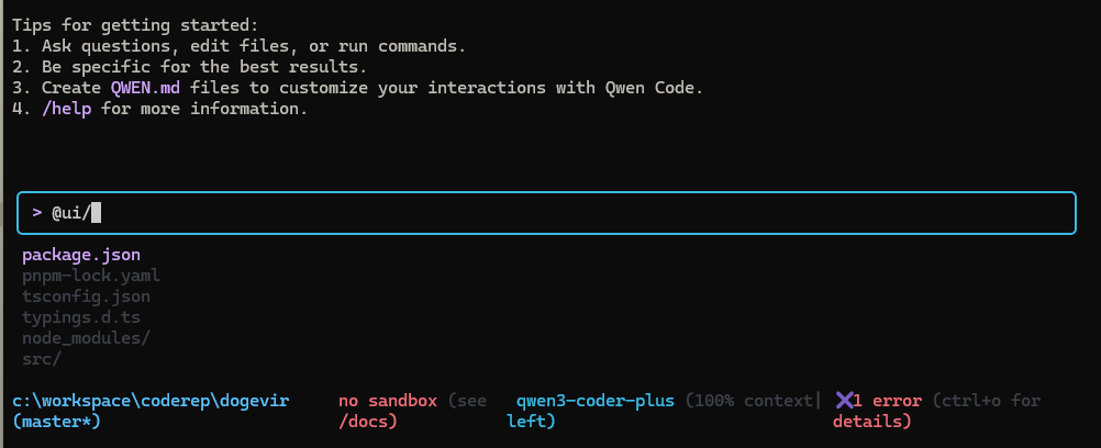 qwen命令,按提示进行初始化设置,输入提示词开始工作流
