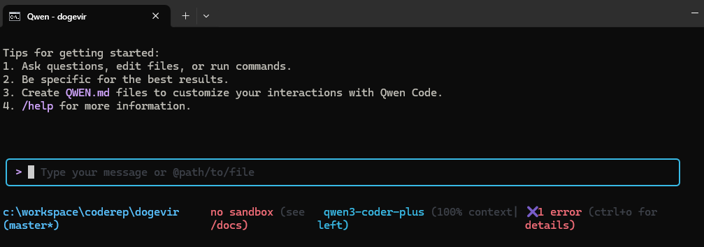 qwen-code,npm install -g @qwen-code/qwen-code - 打开命令行终端,运行